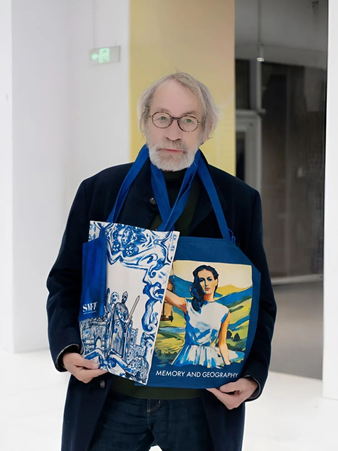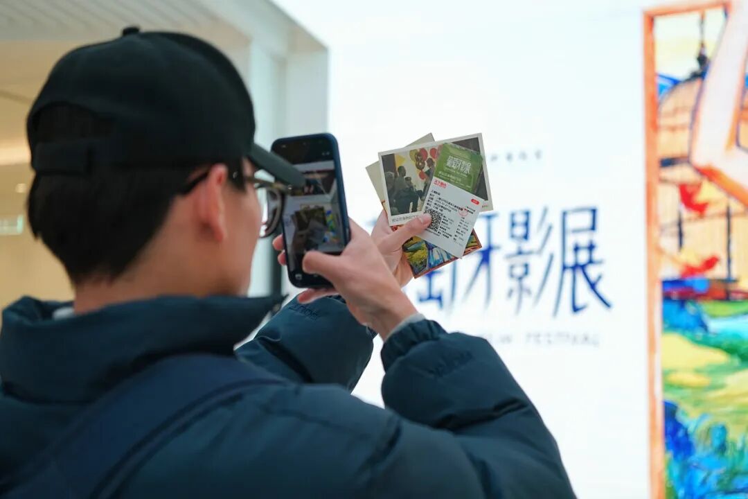 ·来到衍生品柜台,马丁斯兴奋地将影展两款帆布袋挂在脖子上合影留念。瓦伦特则在告别时拿着手账本忙不迭收集贴纸和纪念周边。