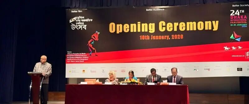 当地时间1月10日下午,第24届孟加拉国达卡国际电影节在孟加拉国家博物馆开幕。孟加拉国信息与广播部、环境、森林与气候变化及水资源部顾问赛义达·里兹瓦纳·哈桑(Syeda Rizwana Hasan)、达卡国际电影节主席艾哈迈德·穆杰塔巴·贾马尔(Ahmed Mujtaba Jamal)、中国驻孟加拉国使馆参赞李少鹏等中外电影人、文化界人士及孟国电影爱好者400余人出席开幕式。