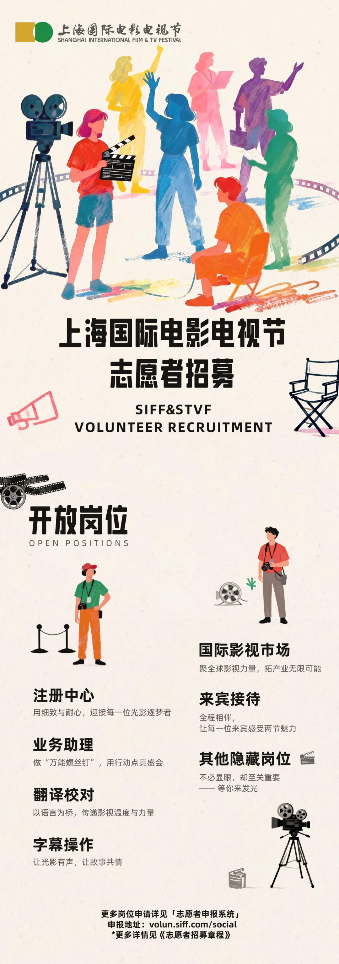 《2026年上海国际电影电视节志愿者章程》以及更多志愿服务岗位,可登录上海国际电影节官方网站(www.siff.com)查阅,报名请登录https://volun.siff.com/social进入报名通道。
