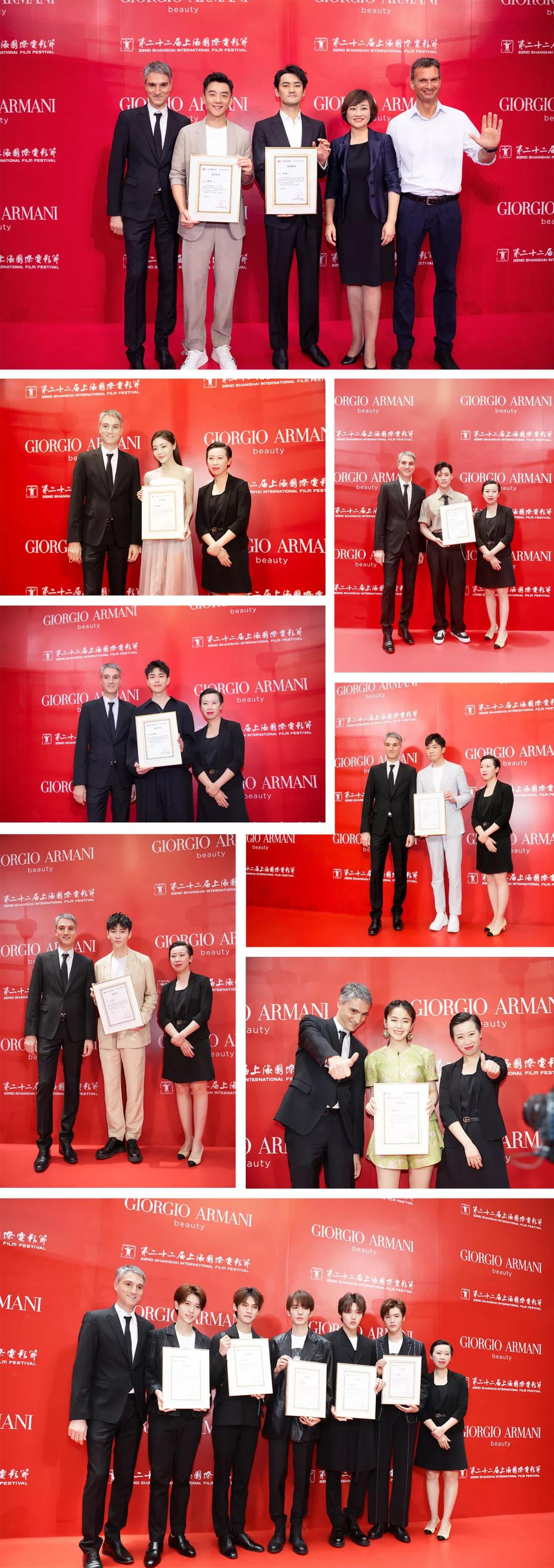 Shanghai International Film Festival together with Armani Makeup, will jointly set up a Film & TV Makeup Design Scholarship for Shanghai Vancouver Film School to focus on the field of film & television makeup, help cultivate professional talents, and encourage young filmmakers in the field of film & television makeup to start. This morning, Yuan Hong, Zheng Kai, Yu Haoming, Kong Chuinan, Zhang Jianing, Dong Youlin, Wang Jia, Deng Jiajia, and the "Desert 5" including Ding Feijun, Hu Wenxuan, Gu Landi, Shi Mingze and Xu Bingchao, as well as other stars gathered in Shanghai and attended the unveiling activity of Armani Box, and they were awarded the title of "Makeup Film Star Promoter" by Shanghai International Film Festival. The project demonstrated that both parties are committed to discovering and cultivating diverse talents of film industry, injecting fresh blood into the industry and further supporting young filmmakers to explore the industry.